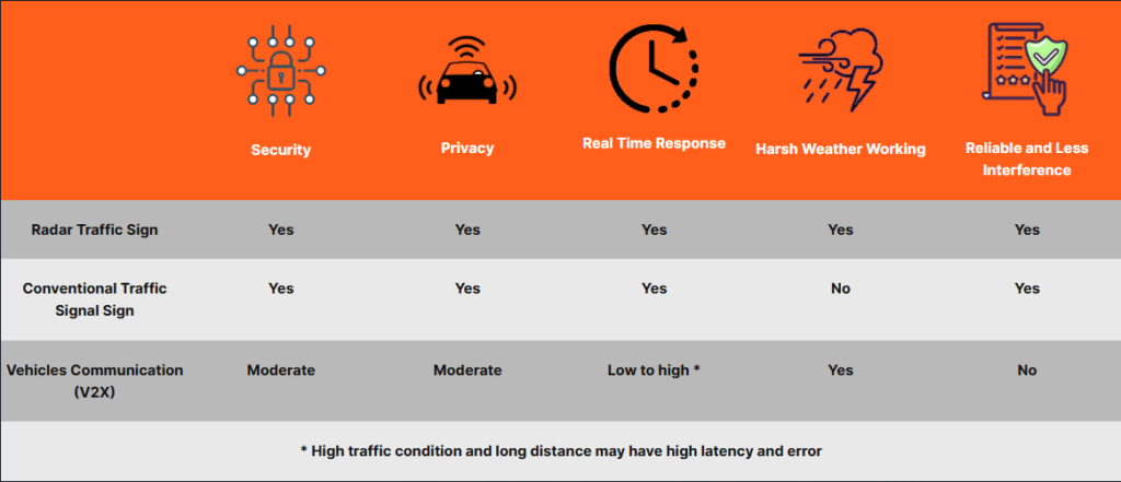 The Radar Traffic Signs are secure and private for vehicles and can be integrated in a traffic management platform to control traffic efficiently and reduce greenhouse gas emissions.